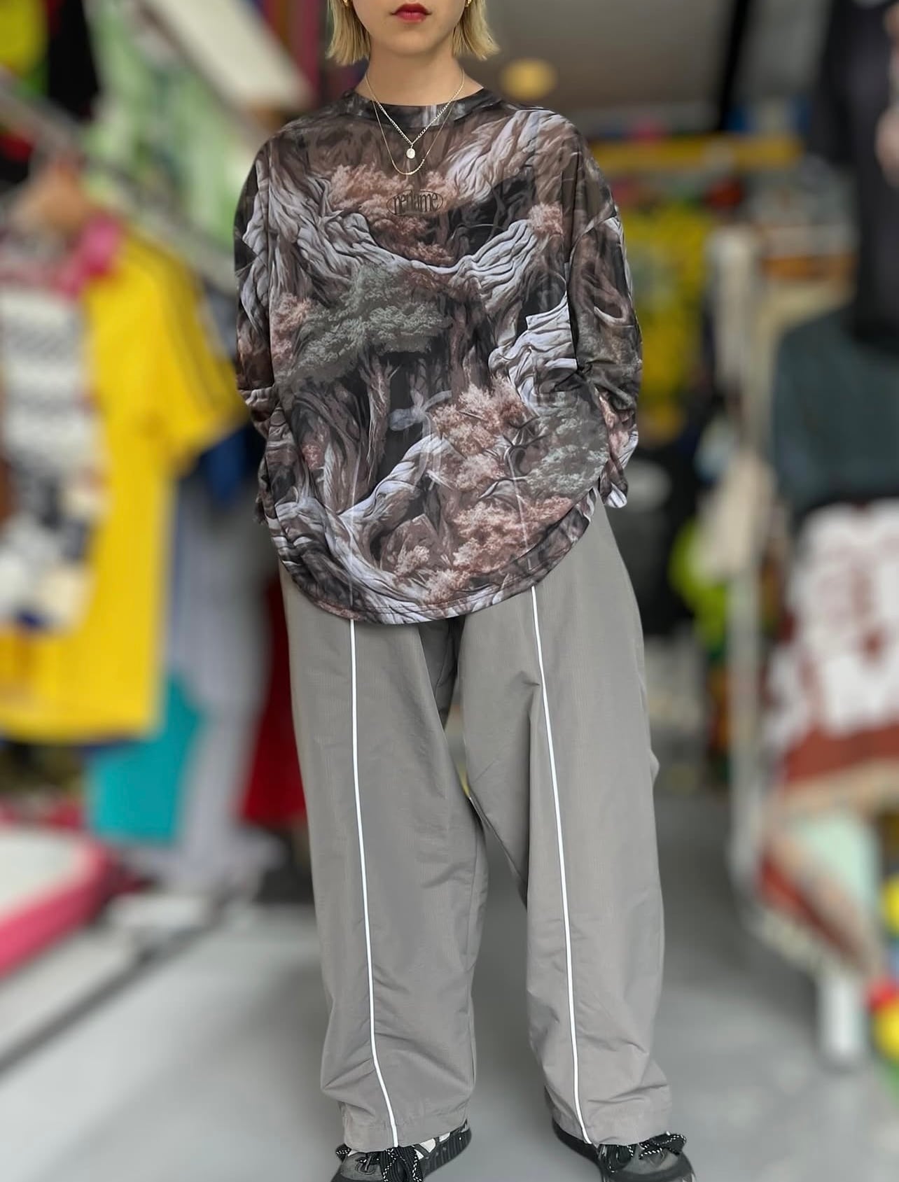 防水のリップストップ生地を使ったナイロンワイドパンツ