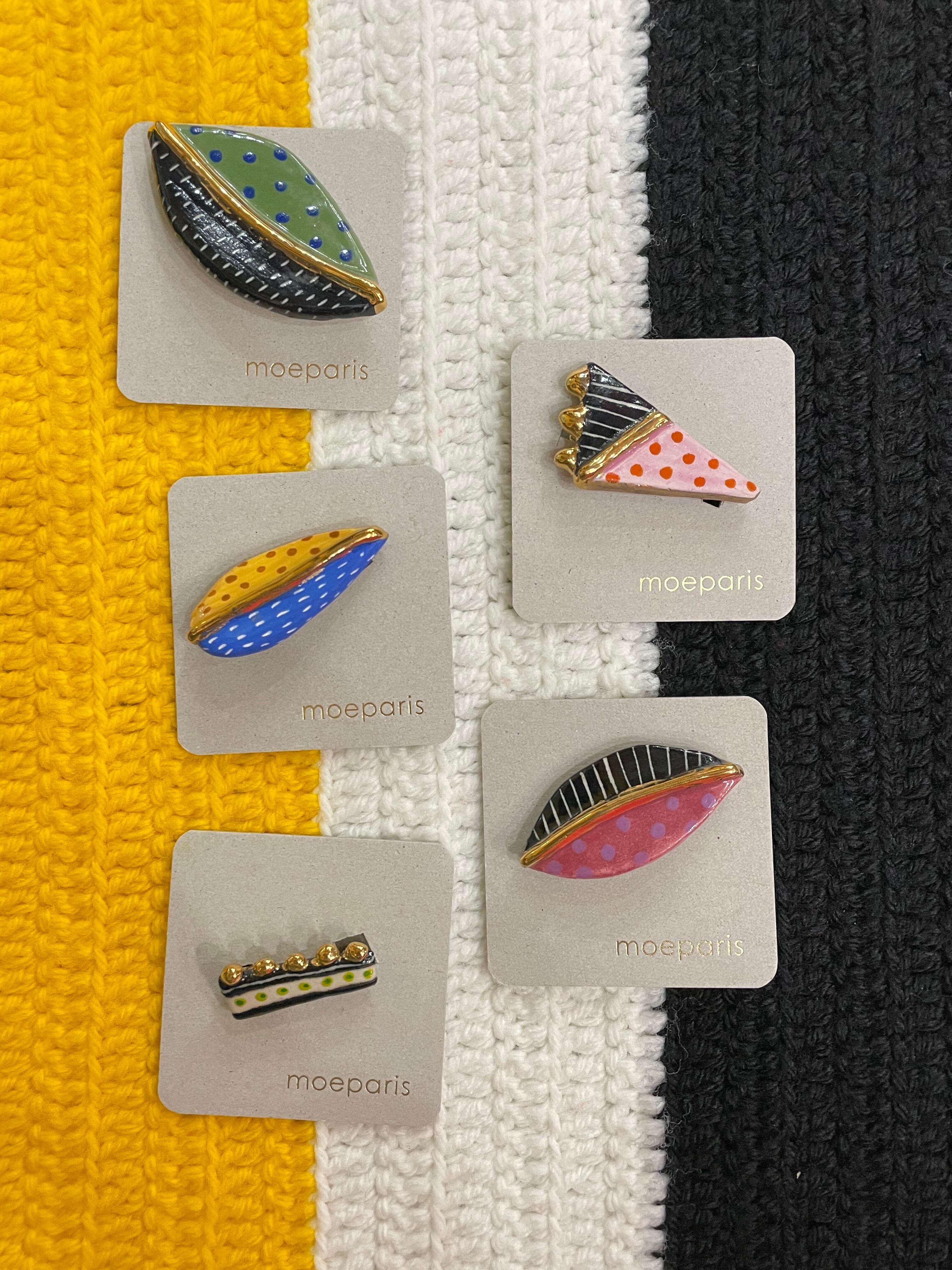 上絵付けや金彩を施し、カラフルな作品を作っています