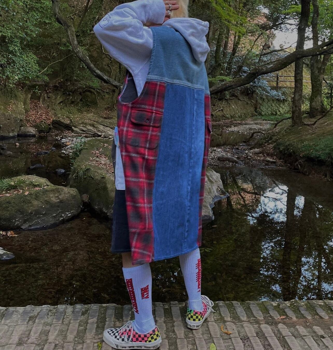 長めの丈感でベスト感覚でも、ワンピースとしても着れる