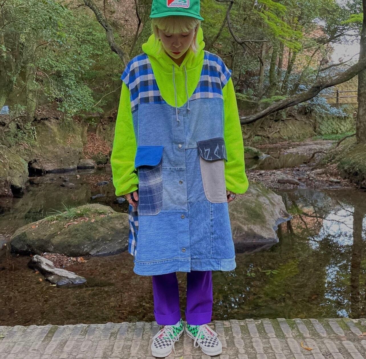 長めの丈感でベスト感覚でも、ワンピースとしても着れる
